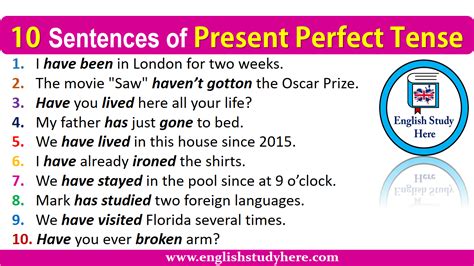 10 sentences of present perfect tense
