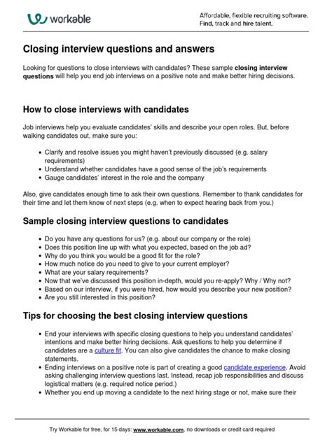 closing interview questions and answers