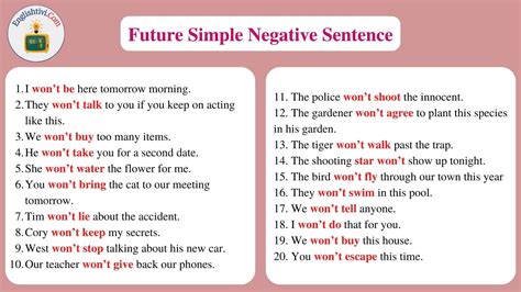 future negative sentences examples