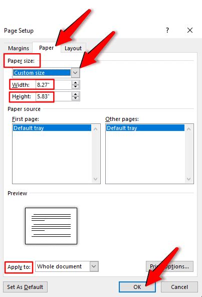 how to custom page size in word