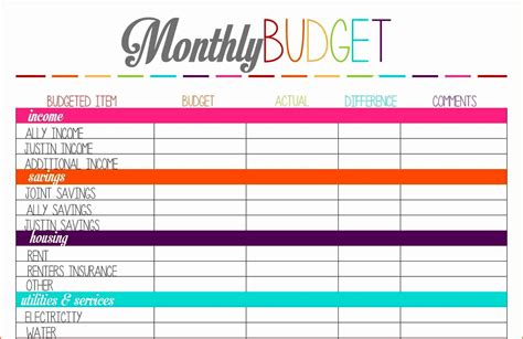 how to do a budget example