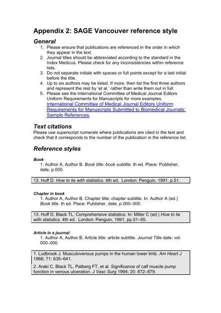 how to reference appendix vancouver