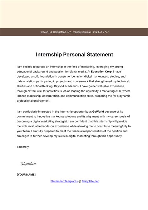 how to write a personal statement for an internship