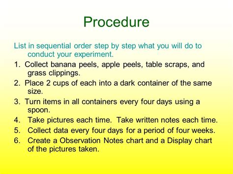 how to write a procedure for science fair project