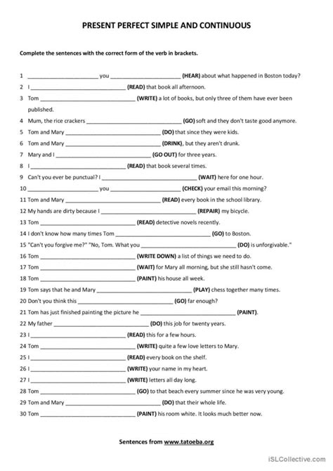 present perfect simple vs present perfect continuous exercises pdf with answers