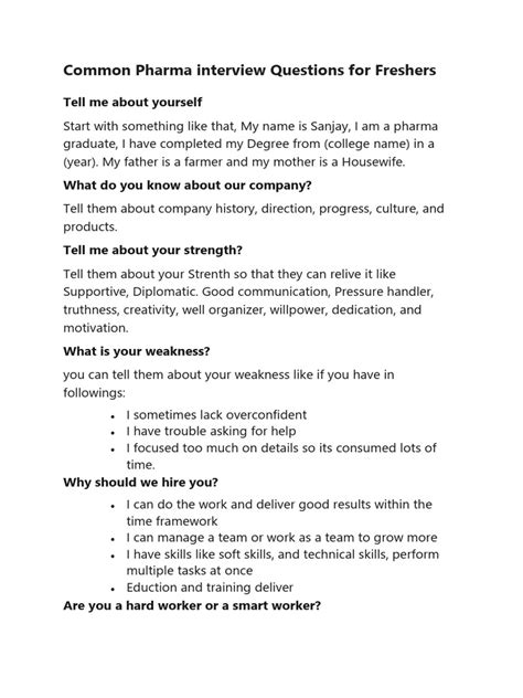 questions asked in pharma interview for freshers