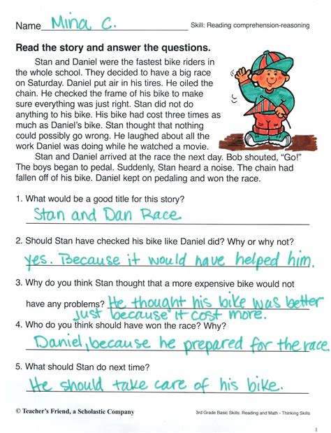short story with comprehension questions and answers grade 7