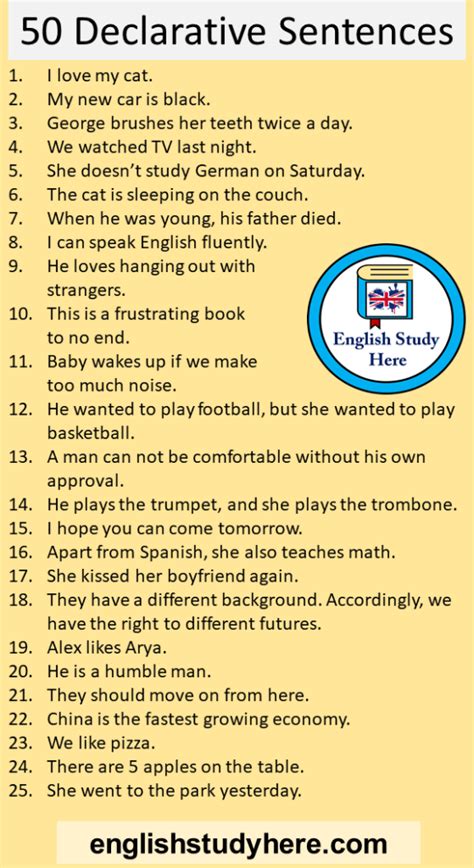 what is an example of a declarative sentence 50