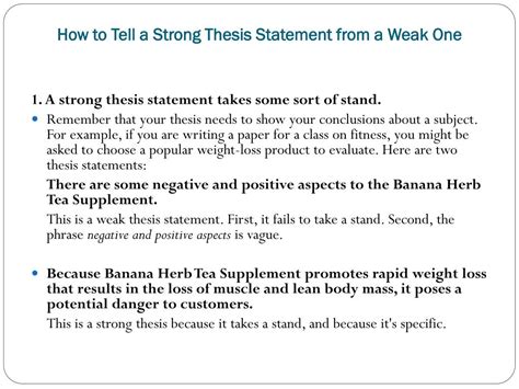 what is an example of a weak and strong thesis statement