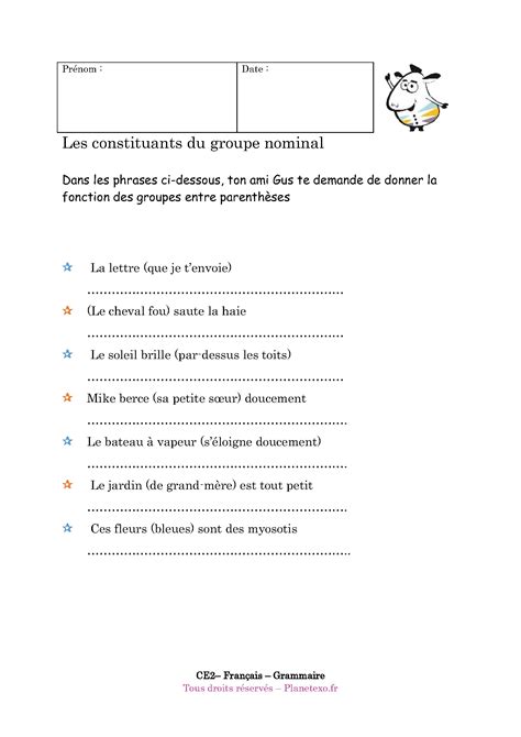 Exemple De Groupe Nominal Sujet Et Groupe Verbal